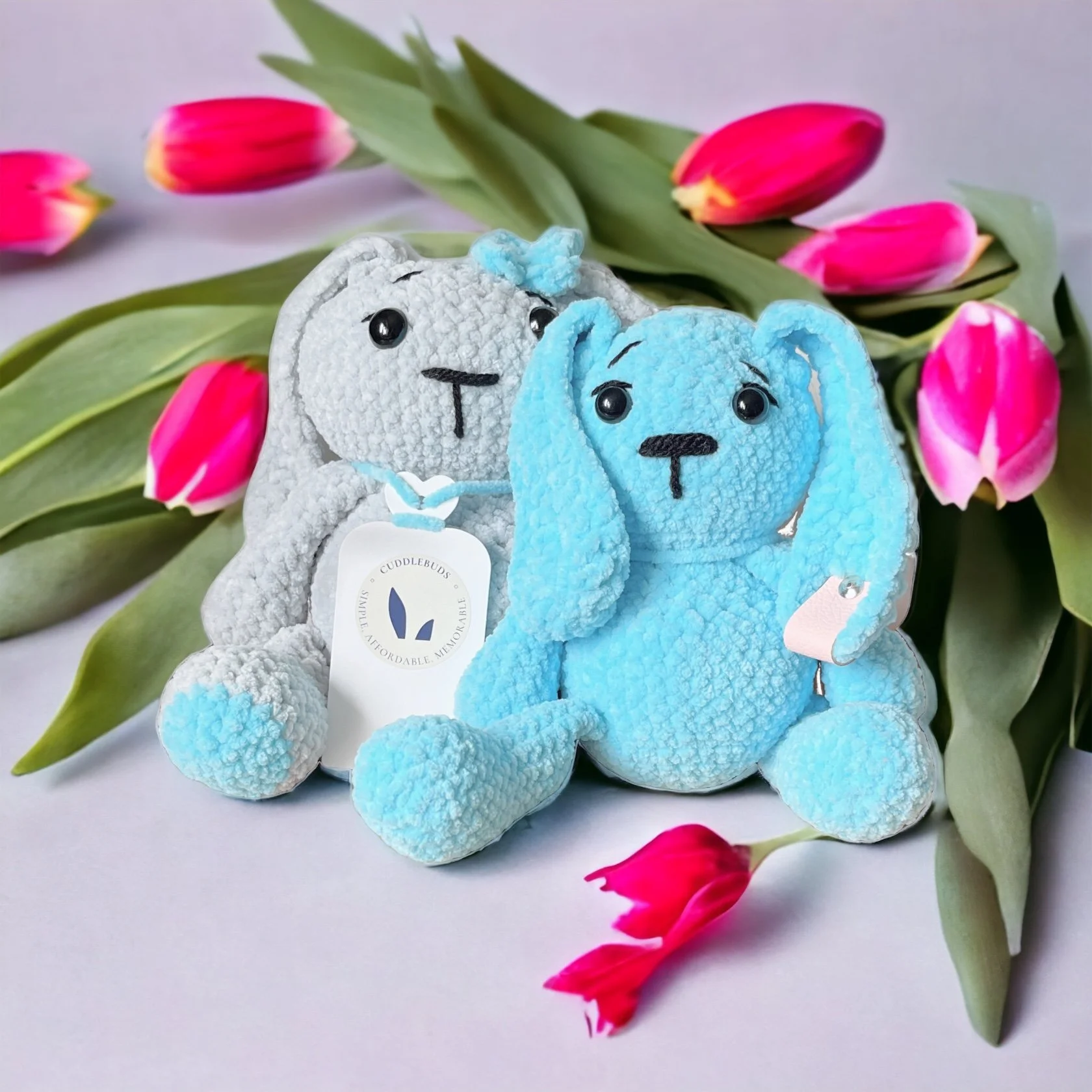 CuddleBuds was born, in 2023, after Antonia made a Bunny for her first grandchild. The Bunny was presented to her daughter at the Baby Shower, and she found she was inundated with requests to make Bunnies and other animals for her daughter’s friends.